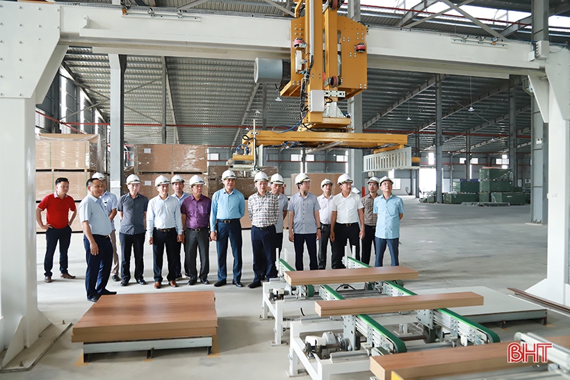 Chủ tịch UBND tỉnh Võ Trọng Hải và Phó Chủ tịch Thường trực UBND tỉnh Nguyễn Hồng Lĩnh cùng đoàn kiểm tra hoạt động sản xuất tại Nhà máy Gỗ Polywod và Nhà máy Sản xuất keo công nghiệp (Nghi Xuân) vào tháng 5/2022.