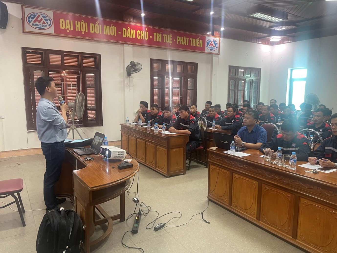 Từ ngày 8/5/2024, tại Văn phòng Công ty Cp Phát triển công nghiệp – Xây lắp và thương mại Hà Tĩnh, Ban giám đốc Công ty phối hợp với Viện an toàn – Quản lý lao động mở lớp huấn luyện an toàn lao động cho hơn 80 nhân viên người lao động của Công ty.
