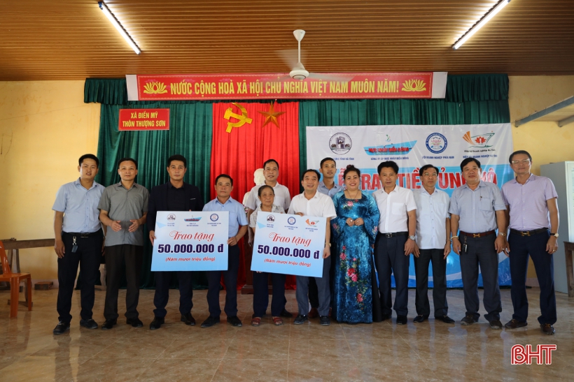 Tiếp đó, đại diện Sở xây dựng, Hiệp hội Doanh nghiệp Hà Tĩnh, CLB Doanh nhân Hà Tĩnh phía Nam trao tặng biểu trưng trị giá 50 triệu đồng cho các gia đình có hoàn cảnh khó khăn.